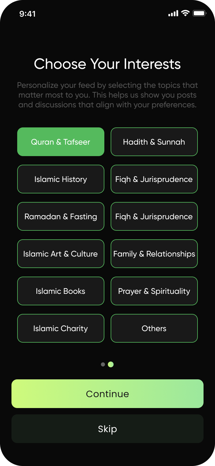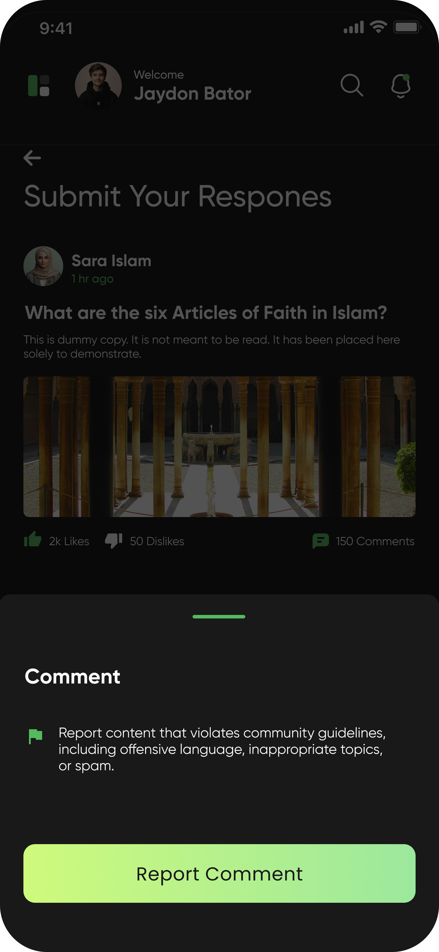 We use a combination of AI filtering and human moderators to ensure all content aligns with Islamic values. Users can also report inappropriate content for review.