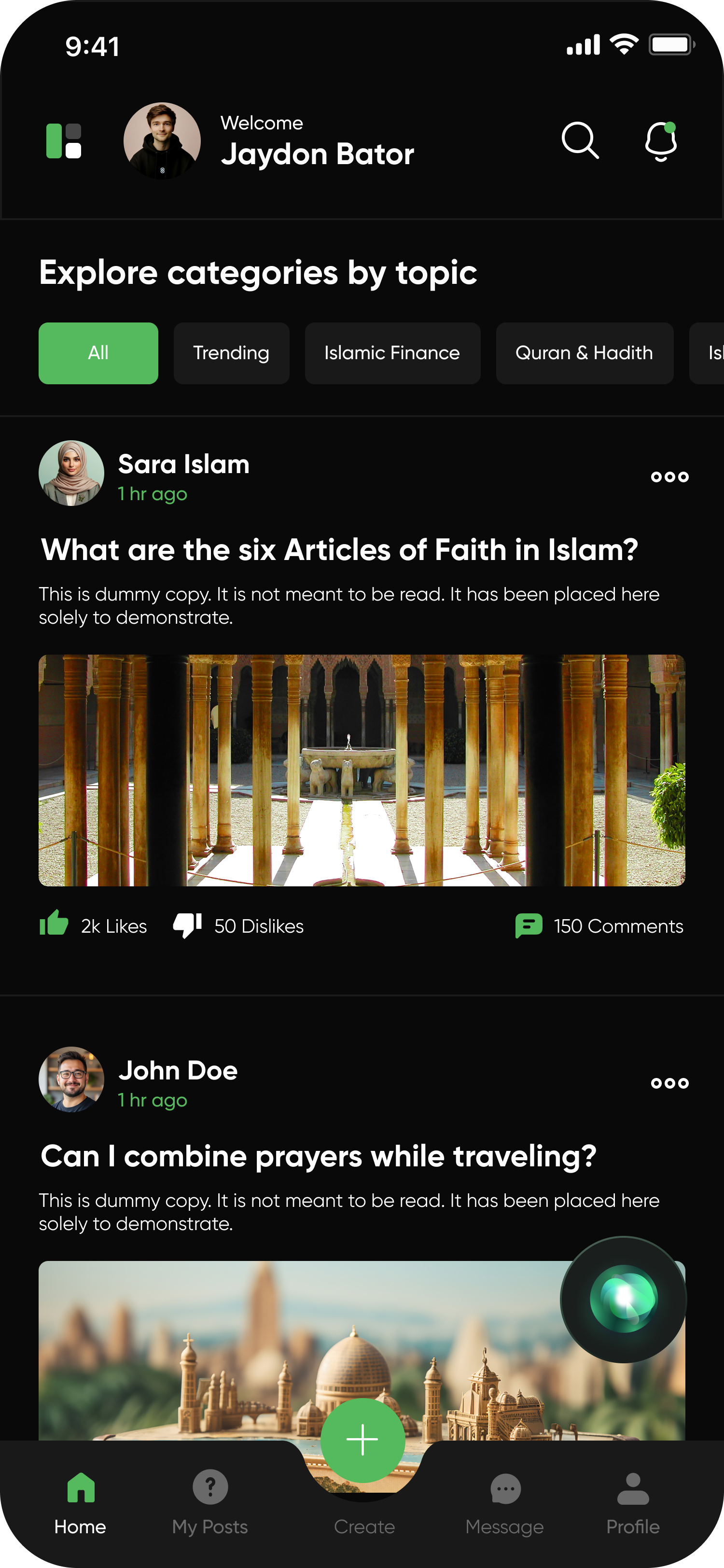 A powerful space to express, learn, and grow — anonymously or proudly, your choice. Plus, all your Islamic needs in one app.